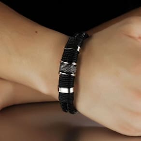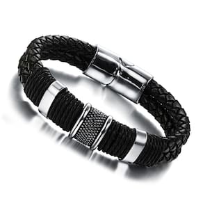 Tamanho: 20x1,2 cm Peso: 30 g Material: aço inoxidável/aço inoxidável PUBold Peça central — Apresenta um toque central texturizado em estilo barril com anéis de aço polido, adicionando um toque urbano a um design clássico de couro. Cordão de couro PU trançado — Feito com couro PU espesso e tecido para uma estrutura resistente e elegante que aprimora o apelo do streetwear. Fecho magnético seguro — Projetado com um elegante fecho de aço inoxidável que oferece travamento e liberação rápidos, garantindo a conveniência do uso diário. Fusão minimalista de hip hop — perfeita para homens que gostam de um acessório limpo, mas marcante, que combina com punk, hip hop ou looks casuais modernos. Ajuste e toque confortáveis — mede 20 cm de comprimento e pesa 30 g, oferecendo um ajuste confortável e leve para uso diário ou estilo noturno.