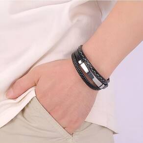 Pulseiras Pulseiras masculinas Pulseiras de couro Pulseiras masculinas de couro. Uma ótima alternativa para combinar com outros acessórios, como relógios ou outras pulseiras, refletindo um toque de estilo único nas roupas. Por esses três motivos, pulseiras ou pulseiras feitas de couro se tornaram acessórios essenciais. Tendência, versatilidade e personalidade. Pulseiras com uma variedade de texturas. Combinação de cores preta, ideal para combinar. Especificações: Material: Couro. Cor: café e preto. Diâmetro: pacote de 17 a 20 cm, 1 x pulseira de couro, pulseira para casais, pulseira feminina, pulseira viking