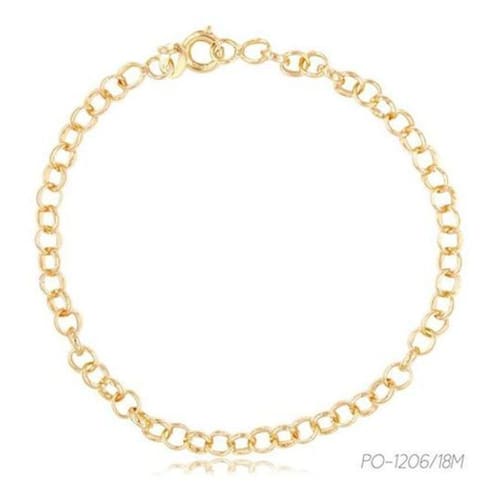 Pulseira de Elo Português Médio Folheado a Ouro Banho: Folheado à ouro Tamanho: Médio Material: Latão : 12 meses na Folheação e 3 meses para defeitos de Fabricação. Medidas aproximadas: Doâmetro: 6 mm Comprimento: 18 cm Peso: 6 g. REF.: PO-1206/18M Marca: Não Informado