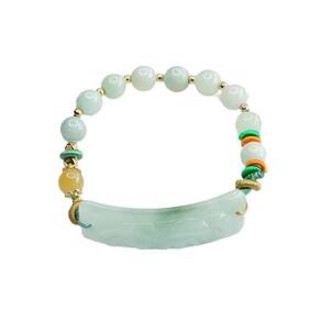 Tamanho: Diâmetro do talão: 8 mm Material: Jade1. Material de jade natural: feita com jade de qualidade premium, esta pulseira oferece uma textura fresca e suave e um tom verde suave que simboliza paz e equilíbrio. 2. Peça central de Pi Xiu esculpida: apresenta uma peça central de jade Pi Xiu () esculpida, conhecida na tradição chinesa como símbolo de proteção, sorte e riqueza. 3. Ajuste ajustável com cordão durável: enfiada em um cordão de tecido forte e colorido, esta pulseira oferece um ajuste seguro e confortável para vários tamanhos de pulso. 4. O tradicional encontra o moderno: a fusão de motivos tradicionais e design contemporâneo de miçangas cria um acessório sofisticado com charme cultural. 5. Ótima para o estilo diário: perfeita para roupas casuais, prática espiritual ou expressão cultural, esta pulseira adiciona elegância e significado sutis a qualquer ocasião.