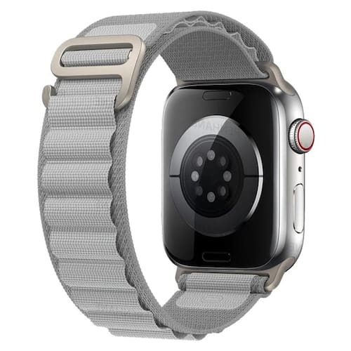 Pulseira alpinista para smartwatch, resistente à água e suor, design robusto e ajustável, ideal para atividades ao ar livre e esportes extremos.