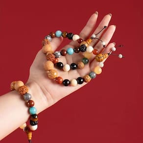 Tamanho: 18 peças Material: madeira 1. 18 miçangas naturais exclusivas Apresenta 18 contas de sementes distintas, incluindo Bodhi, casca de coco, lótus e muito mais — cada uma com um significado simbólico de proteção, sabedoria e atenção plena. 2. O design multicultural colorido combina acabamentos terrosos, vibrantes e polidos para representar a harmonia entre a natureza e o espírito, adicionando uma aparência ousada e significativa ao seu estilo. 3. Simbolismo espiritual feito à mão Com raízes na tradição budista, esta pulseira foi projetada tanto para a prática meditativa quanto para o uso espiritual diário, servindo como um amuleto de proteção e lembrete da paz interior. 4. Ajuste ajustável e unissex Com um cordão flexível e um nó seguro, esse fio se encaixa confortavelmente na maioria dos pulsos, adequado para homens e mulheres de todas as idades. 5. Materiais duráveis de madeira natural Feito de madeira natural e materiais à base de sementes, cada talão é cuidadosamente selecionado e polido para maior conforto e durabilidade durante o uso a longo prazo.
