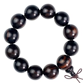 Tamanho: Diâmetro do cordão 20 mm, 12 peças Material: Madeira Dalbergia Nigra Premium Dalbergia Nigra — Feita de madeira negra rara, também conhecida como ébano (Dalbergia nigra), cada talão apresenta tons naturais profundos e padrões sutis de grãos de madeira. Miçangas grandes de 20 mm — Com miçangas redondas ousadas e polidas, esta pulseira causa um forte impacto visual, mantendo o significado espiritual. Artesanato de precisão feito à mão — Cada fio é meticulosamente feito à mão com alinhamento uniforme e polimento fino, refletindo a arte tradicional da madeira. Apelo unissex e masculino — Embora seja adequado para todos os gêneros, o poderoso tamanho de 20 mm e o tom profundo o tornam especialmente ideal para homens que buscam joias espirituais ousadas. Perfeita para meditação e estilo — Seja usada na prática de atenção plena ou como uma declaração de moda, esta pulseira traz harmonia, foco e um senso refinado de cultura ao seu uso diário.
