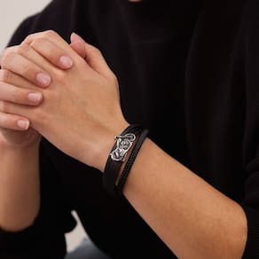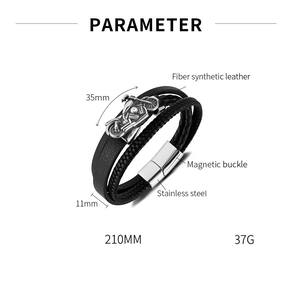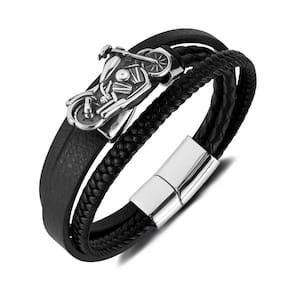 Tamanho: 21 x 1,1 cm Peso: 37 g Material: aço inoxidável/PU Design de charme de motocicleta — Apresenta uma peça central detalhada de motocicleta em aço inoxidável, capturando a atitude e a vantagem mecânica do motociclista em uma forma vestível. Pulseira de couro PU em camadas — Inclui camadas de couro PU preto trançado e liso que oferecem uma estrutura durável, dinâmica e ousada. Fecho magnético polido — Equipado com um fecho seguro de aço inoxidável para fácil fixação e fixação duradoura durante as atividades diárias. Retro Biker & Streetwear Appeal — Perfeito para homens que abraçam a cultura do automobilismo, a moda rock ou desejam um acessório forte e individualista. Ajuste robusto e confortável — mede 21 cm e pesa 37 g, oferecendo uma presença sólida no pulso sem comprometer o conforto.