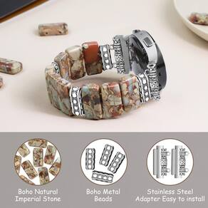 Pulseira feminina de pedra natural de 20 mm compatível com Samsung Galaxy Watch 7/6/5/4/Active 2 40 de 44 mm/Watch 4 Classic 42 de 46 mm/Watch 6 Classic 43 de 47 mm/Watch 5 Pro de 45 mm/Watch FE de 40 mm - Compatibilidade: a pulseira boho com contas Newlibery é compatível com Samsung Galaxy Watch 7/6/5/4/Active 2 40 de 44 mm/Watch 4 Classic 42 de 46 mm/Watch 6 Classic 43 de 47 mm/Watch 5 Pro de 45 mm/Watch FE de 40 mm ?Apenas 20 mm? - Mais tamanhos para escolher: para que a pulseira sirva na maioria dos pulsos, atualizamos propositalmente 3 tamanhos, P serve de 13,5 a 14,7 cm, M serve de 15 a 16 cm, G serve de 16,3 a 17 cm. Meça o tamanho do seu pulso para escolher o melhor tamanho antes de comprar. Dicas: Se você precisar de um tamanho maior, para personalização - Estilo boêmio vintage e 100% artesanal: esta pulseira de relógio com contas é feita de pedras imperadoras naturais de qualidade por 100% artesanal. Pulseira étnica boêmia vintage para mulheres com elementos românticos faz você receber muitos elogios para relaxar e chamar a atenção - Fácil de usar: é confortável e fácil de usar e remover do seu pulso sem uma fivela porque é feita com um cordão elástico importado. Também é fácil de instalar e remover do Samsung Watch e pode ser feito em segundos sem nenhuma ferramenta através de seu adaptador de aço inoxidável - Serviço online 24H: sinta-se à vontade para entrar em contato conosco se tiver algum problema com nossas pulseiras de relógio com contas e forneceremos soluções para você