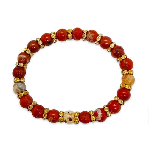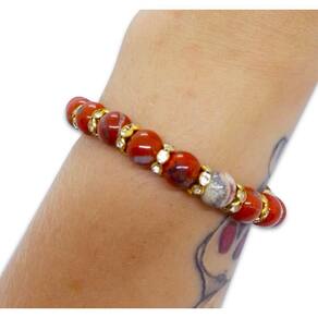 Pulseira de Pedras Naturais Jasper Vermelha - Vermelho - Único
