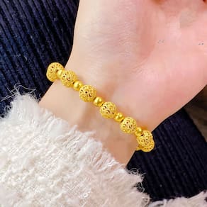Material: grânulos de filigrana ocos requintados em ouro — feitos com intrincados padrões de espiral oca que mostram artesanato refinado e criam uma textura delicada e arejada. Miçangas lisas e de renda alternadas — Apresenta um ritmo impressionante de contas de filigrana e ouro fosco, adicionando dimensão e equilíbrio ao design. Estilo clássico de inspiração vietnamita — combina elegância do sudeste asiático com espiritualidade atemporal, ideal para quem valoriza a profundidade cultural. Ajuste elástico e confortável — Projetado com uma faixa elástica para facilitar o uso, oferecendo flexibilidade e um ajuste seguro na maioria dos tamanhos de pulso. Estética espiritual versátil — Um acessório significativo para mulheres que buscam elegância e simbolismo em uma única peça, perfeito para uso casual ou cerimonial.
