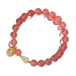 Tamanho: Diâmetro do cordão 8 mm Peso: g Material: quartzo de morango As contas naturais de quartzo de morango apresentam contas redondas de quartzo de morango de 8 mm em um tom rosa quente, simbolizando amor, atração e clareza emocional, ideais para usuários com foco espiritual. Hetian Jade Gourd Accent Inclui um pingente de cabaça delicadamente definido feito de jade hetiano branco, tradicionalmente representando longevidade e prosperidade no simbolismo chinês. Design de pingente Fortune Coin Decorado com um pingente dourado gravado em estilo chinês, adicionando profundidade cultural e um toque de elegância tradicional à pulseira. Ajuste confortável e flexível amarrado em um cordão elástico para facilitar o uso e a remoção, projetado para caber confortavelmente nos pulsos da maioria das mulheres sem a necessidade de fechos. Estilo espiritual e elegante Perfeita para uso diário, meditação ou definição de intenções, esta pulseira combina charme estético com significado simbólico para mulheres que adotam uma vida consciente.