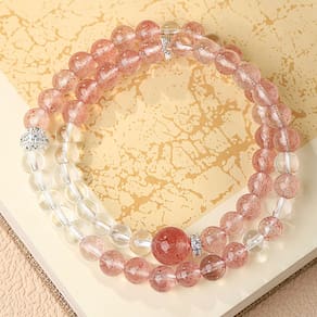 Tamanho: Diâmetro do cordão 8 mm Material: quartzo de morango Design de quartzo de morango de fio duplo Apresenta contas naturais de quartzo de morango de 8 mm em um design de dois círculos, combinando tons românticos de rosa com brilho cristalino transparente para uma aparência em camadas. Detalhes em água-marinha e cristal Decorados com contas de água-marinha e cristais redondos transparentes, simbolizando clareza, calma e fluxo emocional, perfeitos para equilíbrio e energia espiritual. Elementos elegantes de inspiração chinesa incorporam a estética tradicional com as sensibilidades da moda moderna, ideais para mulheres que buscam joias exclusivas e simbólicas. Ajuste flexível e confortável Construída com um cordão elástico de alta qualidade, esta pulseira é fácil de usar e se encaixa confortavelmente na maioria dos pulsos, oferecendo uma fixação segura sem fechos. Versátil para uso espiritual ou diário Uma peça perfeita para quem abraça a energia espiritual e a elegância feminina, adequada para meditação, estilo moderno ou presença consciente.