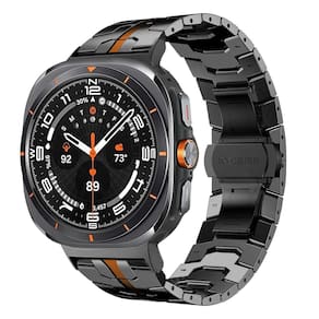 Pulseira de aço inoxidável compatível com Samsung Galaxy Watch Ultra de 47 mm (2024), pulseira de metal ajustável, robusta, para homens e mulheres (preto e laranja) - Modelos compatíveis: pulseiras de substituição de metal de aço inoxidável especialmente projetadas para Samsung Galaxy Watch 7 Ultra 2024 de 47 mm. - Pulseira de aço inoxidável: inspirada no Homem de Ferro, feita de aço inoxidável 316L acetinado escovado com fivela dobrável, as linhas masculinas, fortes e fluidas e a estética nítida proporcionam uma unidade visual harmoniosa. - Conteúdo da embalagem: 1 pulseira de aço inoxidável compatível com Samsung Galaxy Watch 7 ultra de 47 mm + 1 ferramenta de remoção de elos - ?Fechos dobráveis?O fecho de borboleta personalizado se dobra perfeitamente dentro da pulseira. A fivela oculta abre com um clique dos dois botões laterais, sem nenhuma ferramenta especial. - ?Aço inoxidável premium?Feito de aço inoxidável premium, oferece sensação de toque suave, extremamente confortável de usar. Nunca precisa se preocupar com problemas de pele, uma ótima opção para o seu terno de negócios ou qualquer outra roupa formal