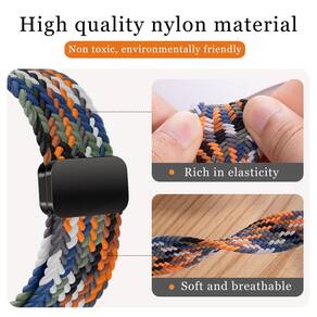 Pulseira trançada Solo Loop com design de fivela magnética, feita de nylon de alta qualidade, leve, macia, respirável e ajustável. Fácil instalação e remoção. Compatível com Huawei Watch Fit 2. Fivelas duplas de segurança de metal em aço inoxidável para maior firmeza. Ímã forte que mantém a pulseira no lugar. Lavável, ideal para exercícios e uso diário. Tamanho único ajustável.Tipo