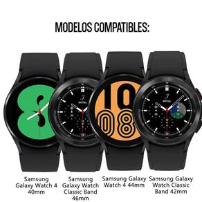 Samsung Galaxy Watch 4 Classic (42 mm e 46 mm), Samsung Galaxy Watch 4 (40 mm e 44 mm), Samsung Galaxy Watch 5 (40 mm e 44 mm)Pulseira de silicone compatível com os seguintes modelos: -Samsung Galaxy Watch 4 Classic (42 mm e 46 mm) -Samsung Galaxy Watch 4 (40 mm e 44 mm) .-Samsung Galaxy Watch 5 (40 mm e 44 mm). Características: — Âncoras curvas. -Fivela de aço inoxidável. -Comprimento das tiras: 13 cm e 8 cm (fivela lateral). - Largura entre as alças (20 mm) - Pino de ancoragem rápido incluído.