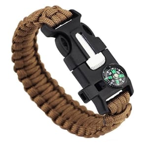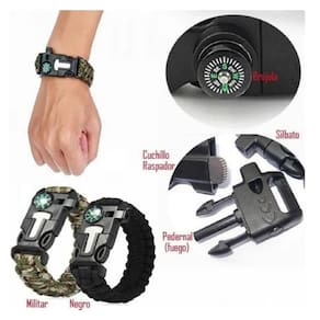 A pulseira 100% nova e de alta qualidade apresenta quase 3 metros de corda de paraquedas com tecido de cobra única\ nMaterial: aço inoxidável + pulseira de poliéster, fivela de plástico + arranhão\ nFunção: apito, sílex, acionador de incêndio, corda removível, identifique a direção da bússola, pulseira Whistle HebillParachute Cord com sílex de partida de fogo Paracord 550 Scraper pode ser usada como cortador Comprimento total: aprox. 27 cm Largura da pulseira: aproximadamente 2 cm