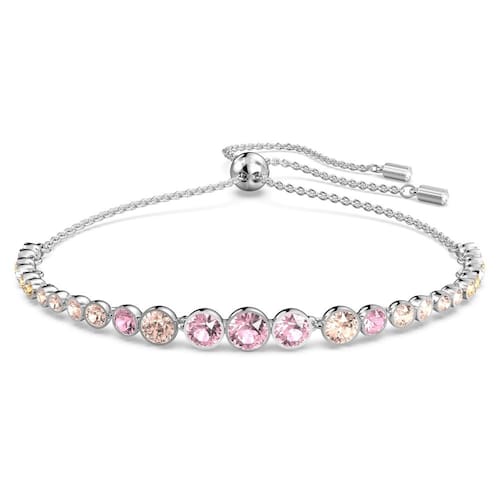 Pulseira de tênis SWAROVSKI, ajustável com cristais redondos em tons de rosa e azul em vários tamanhos em uma faixa com acabamento em ródio, tamanho M, parte da coleção Emily - Medidas: 9 3/8 polegadas - Um mundo de maravilhas espera por você: uma pulseira delicada e atemporal, com cristais cintilantes cortados em círculo em rosa e azul em uma faixa com acabamento em ródio; um enfeite clássico para looks diurnos e noturnos - Artigo refinado história: simplicidade e romance se unem para tornar esta pulseira ajustável Swarovski uma adição atemporal a qualquer coleção ou um presente deslumbrante para um amigo ou ente querido - Projetada para durar: as joias Swarovski mantêm seu brilho quando práticas simples de cuidado são observadas; remova antes de entrar em contato com água, loções ou perfumes e polir com um pano sem fiapos - Versátil e atraente: seja um toque diário ou um acessório exclusivo para iniciar uma conversa, a pulseira Emily é uma peça simples que pode ser usada sozinha ou com outras peças empilháveis - Itens entregues: (1) Swarovski Pulseira Emily para mulheres, pulseira ajustável com fecho de bolo e cristais Swarovski rosa e azul cintilantes, pulseira com acabamento em ródio, completa com Caixa de pulseira Swarovski