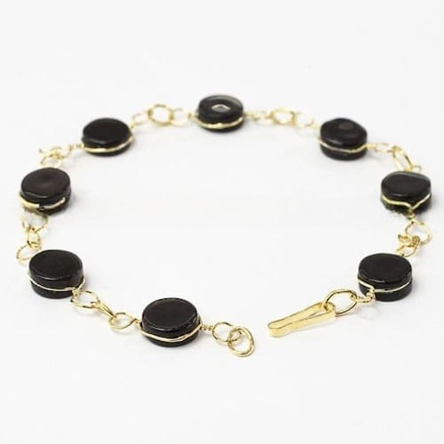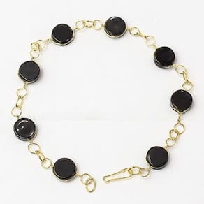 Pulseira Disco Pedra Obsidiana Negra Ranhurado Dourado. Pulseira Disco do Elo Dourado com Pedra Obsidiana Negra ótimo Brilho, pedra genuina, mineral autêntico. Pulseira com elo Amarrando o Navete Ranhurado em forma de Elo na Corrente, Peça bem Delicada e com uma Levesa Maravilhosa.