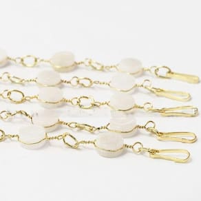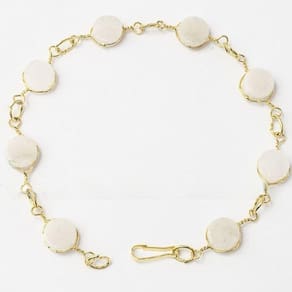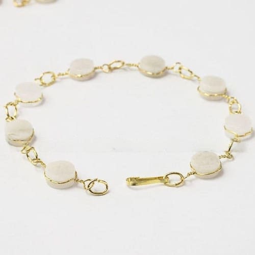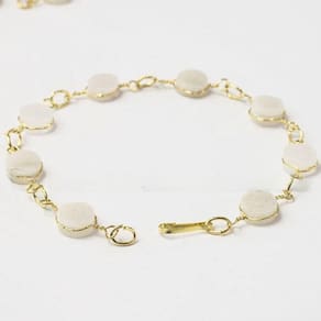 Pulseira Disco Pedra Quartzo Leitoso Ranhurado Dourado. Pulseira Disco do Elo Dourado com Pedra Quartzo Leitoso ótimo Brilho, pedra genuina, mineral autêntico. Pulseira com elo Amarrando o Navete Ranhurado em forma de Elo na Corrente, Peça bem Delicada e com uma Levesa Maravilhosa.