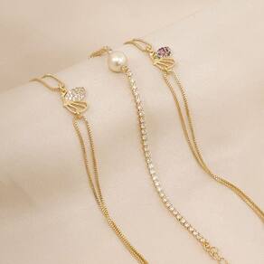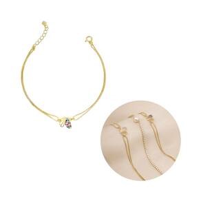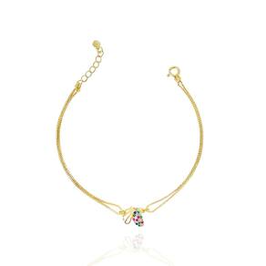 Pulseira Dupla Com Borboletinha Colorida Banhada a Ouro