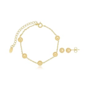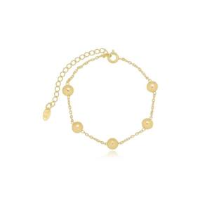 Pulseira e Brinco Bola Banhado a Ouro 18k 8954 Conjunto: pulseira e brinco com bola 6mm; pulseira medindo 16cm mais 5cm de extensor regulável com 5 bolas.