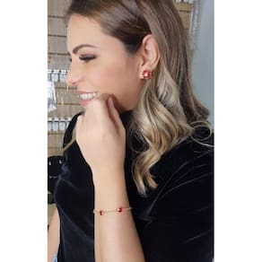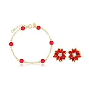 Pulseira e Brinco Flor Banhado a Ouro 18k 8734 Conjunto: pulseira pedrinhas em resina 6mm vermelha e brinco flor petálas em resina Banhado a Ouro 18k Banho Hipoalergênico SEM NÍQUEL um dos maiores causadores de alergia Altíssimo padrão de qualidade Garantia de 1 ano no banho