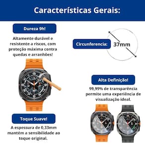 Dureza e durabilidade: O vidro temperado é extremamente resistente e durável, oferecendo uma camada de proteção para a tela do relógio.