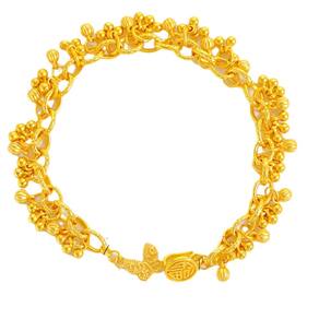 Peso: 33 g Material: Gold Placer Abundant Design inspirado em frutas — apresenta pingentes agrupados que lembram frutas maduras, simbolizando prosperidade, abundância e energia da colheita. Estilo vintage banhado a ouro — Feito com intrincados elos de corrente dourados e detalhes pendentes que refletem o artesanato tradicional com um toque luxuoso. Soft Bell Accents — Inclui pequenos pingentes em forma de sino que se movem suavemente e emitem sons sutis, adicionando apelo visual e sensorial. Fecho oriental seguro — O fecho é detalhado com motivos culturais, incluindo símbolos de borboletas e fortunas, aprimorando a identidade tradicional da pulseira. Estética exótica e espiritual — Ideal para mulheres que buscam um acessório marcante com simbolismo tradicional, adequado tanto para o estilo diário quanto para uso festivo.