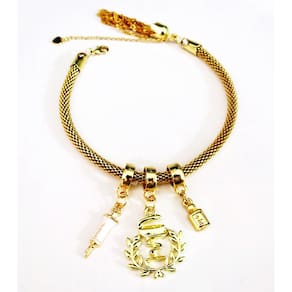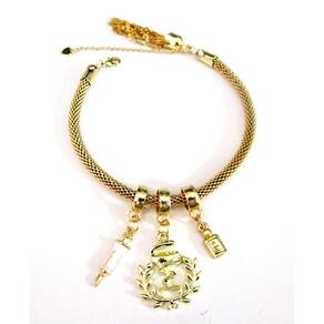 Pulseira Farmácia Remédio Seringa Folheado A Ouro 18k