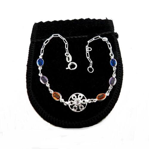 Pulseira Feminina 16/20Cm Colorida Flor Folheado Prata Pl518
