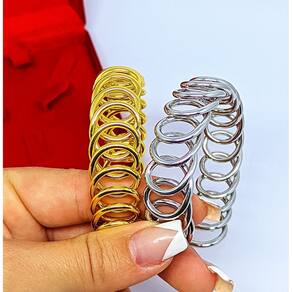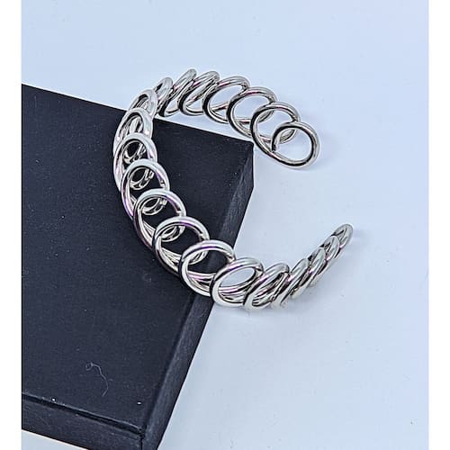 Pulseira rígido tipo Bracelete de aço em círculos dourados de design moderno, perfeito para qualquer ocasião. É feito de aço, o que o torna durável e resistente à água e ao desgaste. É hipoalergênico, o que o torna seguro para pessoas com pele sensível ou alergias.