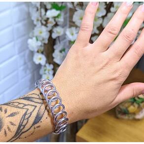 - Tipo de Pulseiras: Geométricas vazado - Material: Metal com Folheado a Ouro - Antialérgico sm - Brilho de qualidade - Não risca facilmente - Largura do Colar: 4 mm - Forma da Pulseira Geométrica - Estilo: Punk - Ajustável: Sim encaixe no Pulso nao havendo extensor do tamanho - Cor; Prata, Dourado
