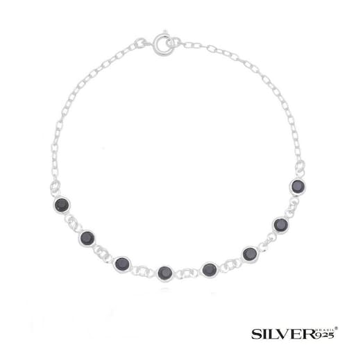 Pulseira feminina com zircônias na cor preta redonda em prata lei 925Acompanha:- pulseira- certificado de garantia e legitimidade- embalagemDescrição:- pulseira feminina com zircônias na cor preta redonda em prata 925- peso 1.4g- tamanho: 19 cm- origem: brasil- composição: prata 925 Garantia do fabricante Garantia contra defeitos de fabricação, reposição de pedras em caso de queda espontânea e certificação da prata 925.A garantia não cobre quebras, amassados, ralados e uso excessivo.A garantia se anula em caso de mau uso, entende-se como mau uso exposição a produtos químicos, altas temperaturas e qualquer situação fora do uso normal.Produto de metal, composto por 92,5% de prata e 7,5% de ligas nobres.Garantia legal de 1 ano