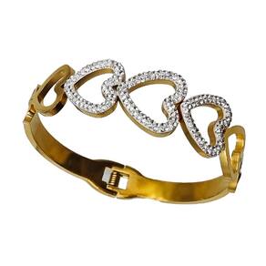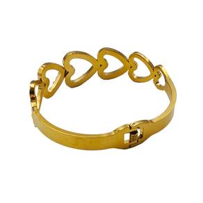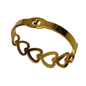 Pulseira Feminina Coração Bracelete Aço Inox Brilhante Prego Moda - Cor: Dourado