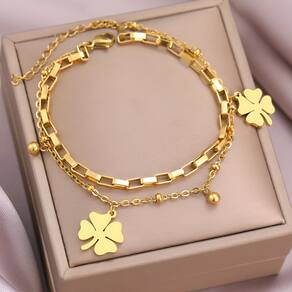 Pulseira Feminina Trevo Melian banhada a ouro 18k em aço inoxidável