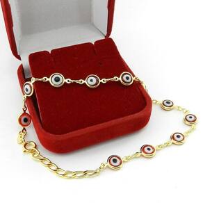 Pulseira Feminina 18Cm Olho Grego 6Mm Folheada Ouro PL335
