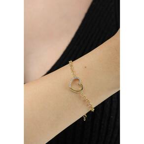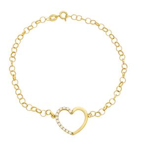 Tamanho: 17.5cm Peso: 1.8g Largura: 3mm Material: Ouro 18kPedra: Zircônia Fecho: Boia Tamanho do Coração: 1.8cm Acompanha caixinha para armazenar sua joia.
