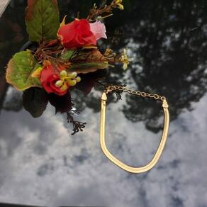 01 Pulseira Dourada tipo Fita, tamanho 15cm com 5 cm de extensor.