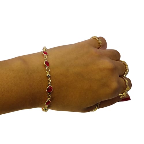 A Pulseira Folheada Ouro com Zircônias Vermelhas da Bialluz, carrega promessa e confiança, expressando bênçãos, proteção, sorte, amor e apreciação, um mimo. Excelente para presentear, aniversários, graduações ou apenas ofertar a sorte àqueles que ama, podendo ser benzida.