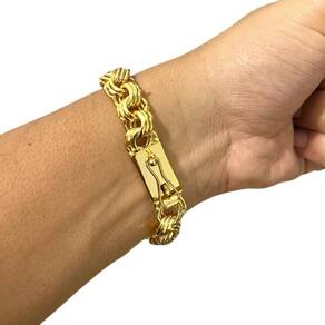 Pulseira Friso Triplo 12mm Banhado a Ouro 18K Luxo Detalhes do Produto: Material: ligas metálicas de alta qualidade, especialmente tratadas para fixação e absorção do ouro, com acabamento em verniz protetor. Aparência: visual idêntico ao ouro maciço. Produção: artesanal, com atenção meticulosa aos detalhes. Banho: 10 camadas espessas de ouro 18k, finalizadas com verniz antialérgico . Elos: soldados varia conforme o modelo . Pedras: zircônias brilhantes cravejadas quando aplicável . Tamanhos Disponíveis: Cordões Masculinos: 70cm padrão e 60cm sob consulta/Pedido Via Chat . Cordões Femininos: 50cm padrão e 45cm sob consulta/Pedido Via Chat . Pulseiras: 21cm padrão ; tamanhos de 18cm a 23cm sob consulta/Pedido Via Chat. Pingentes: conforme imagens; consulte para mais detalhes via chat. Espessuras Recomendadas para Cordões / Pingentes: P: 1mm a 4mm M: 4mm a 8mm G: 6mm a 13mm Gg: 12mm a 18mm Incluso na Compra: Saquinho de organza para armazenamento seguro. Caixa elegante, perfeita para presente. Cupom de desconto para a próxima compra. Flyer com outros produtos da coleção. Carta de agradecimento personalizada. Adesivo da marca ToJoia18k. Informações Adicionais: : 6 meses termos acompanham o produto . Devolução: 7 dias para devolução sem questionamentos. Envio: despacho em até 24 horas úteis após confirmação do pagamento. Cuidados com a Peça: Evite contato com produtos químicos; aguarde o perfume secar antes de usar. Evite contato com shampoo, condicionadores e suor excessivo. Armazene em local seco, preferencialmente no saquinho de organza fornecido. Uso no mar e piscina é permitido; lave com água corrente e sabão neutro após. Por que Escolher a ToJoia18k Semi-joias luxuosas que combinam estilo, qualidade e sofisticação. Banho espesso de ouro 18k, garantindo brilho duradouro e acabamento impecável. Design exclusivo e produção artesanal, perfeitos para qualquer ocasião. Materiais premium que asseguram durabilidade. Ao escolher uma semi-joia ToJoia18k, você investe em qualidade, elegância e uma experiência única. Aguardamos sua compra Observação: pode ocorrer variação no fecho raramente . Imagens reais, sem edição. Qualquer dúvida, estamos à disposição para esclarecimentos. Marca: Não Informado