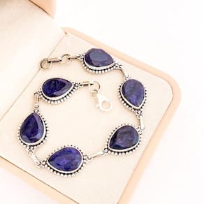 Pulseira Gotas Pedra Safira Indiana Prata 925 Pulseira Gotas Pedra Safira Indiana Prata 925 20cm - Pulseira Gotas Pedra Safira Indiana Prata 925 Encante-se com a elegância da **pulseira feminina em Prata 925 com gotas de Safira indiana**. Cada detalhe desta peça foi cuidadosamente trabalhado: as pedras naturais em formato de gota apresentam um azul profundo e misterioso, realçadas por uma delicada moldura de prata de Bali com acabamento artesanal. A safira é conhecida por simbolizar sabedoria, proteção e serenidade, tornando esta joia ainda mais especial.