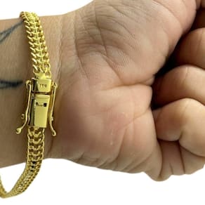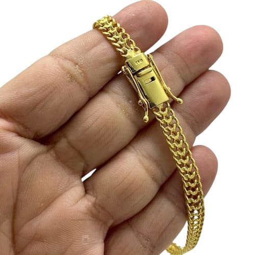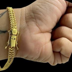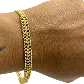 Pulseira Grumet Duplo 7mm Banhado a Ouro 18K Luxo Detalhes do Produto: Material: ligas metálicas de alta qualidade, especialmente tratadas para fixação e absorção do ouro, com acabamento em verniz protetor. Aparência: visual idêntico ao ouro maciço. Produção: artesanal, com atenção meticulosa aos detalhes. Banho: 10 camadas espessas de ouro 18k, finalizadas com verniz antialérgico . Elos: soldados varia conforme o modelo . Pedras: zircônias brilhantes cravejadas quando aplicável . Tamanhos Disponíveis: Cordões Masculinos: 70cm padrão e 60cm sob consulta/Pedido Via Chat . Cordões Femininos: 50cm padrão e 45cm sob consulta/Pedido Via Chat . Pulseiras: 21cm padrão ; tamanhos de 18cm a 23cm sob consulta/Pedido Via Chat. Pingentes: conforme imagens; consulte para mais detalhes via chat. Espessuras Recomendadas para Cordões / Pingentes: P: 1mm a 4mm M: 4mm a 8mm G: 6mm a 13mm Gg: 12mm a 18mm Incluso na Compra: Saquinho de organza para armazenamento seguro. Caixa elegante, perfeita para presente. Cupom de desconto para a próxima compra. Flyer com outros produtos da coleção. Carta de agradecimento personalizada. Adesivo da marca ToJoia18k. Informações Adicionais: : 6 meses termos acompanham o produto . Devolução: 7 dias para devolução sem questionamentos. Envio: despacho em até 24 horas úteis após confirmação do pagamento. Cuidados com a Peça: Evite contato com produtos químicos; aguarde o perfume secar antes de usar. Evite contato com shampoo, condicionadores e suor excessivo. Armazene em local seco, preferencialmente no saquinho de organza fornecido. Uso no mar e piscina é permitido; lave com água corrente e sabão neutro após. Por que Escolher a ToJoia18k Semi-joias luxuosas que combinam estilo, qualidade e sofisticação. Banho espesso de ouro 18k, garantindo brilho duradouro e acabamento impecável. Design exclusivo e produção artesanal, perfeitos para qualquer ocasião. Materiais premium que asseguram durabilidade. Ao escolher uma semi-joia ToJoia18k, você investe em qualidade, elegância e uma experiência única. Aguardamos sua compra Observação: pode ocorrer variação no fecho raramente . Imagens reais, sem edição. Qualquer dúvida, estamos à disposição para esclarecimentos.
