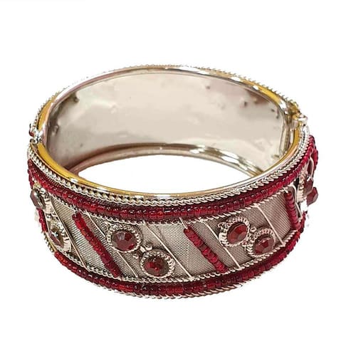 Pulseira indiana em metal, com detalhes suaves. Produto perfeito para combinar com todo tipo de ocasião, desde um passeio à luz do dia quanto uma festa. Possui um mecanismo de abre e fecha com pequenas molas para encaixar perfeitamente no pulso.