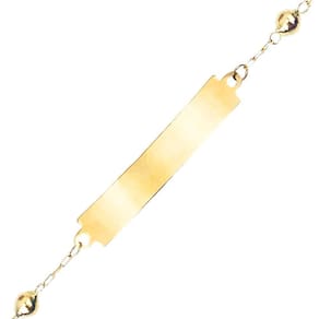 A pulseira Infantil em Ouro 18K é uma demonstração de carinho, afeto e amor à vida que surge. A sua chapa de 2,5cm também transmite o desejo de vida longa, com muita prosperidade E para dar um toque de delicadeza 8 bolinhas também de Ouro 18K