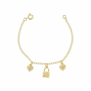 Pulseira infantil Armazem RR Bijoux cadeado coração ouro Folheado a banho 18K Tamanho pulseira aberta: 13,5cm A pulseira infantil Armazem RR Bijoux cadeado coração ouro é um acessório infantil delicado que traz muito charme para as nossas crianças. Nossa loja oferece de 01 ano em todas as peças. Especificações: Marca: Armazem RR Bijoux Modelo: Pulseira Cor: Dourado Folheado a banho 18K Tamanho pulseira aberta: 13,5cm Sobre a marca: A Armazém RR Bijoux é uma loja de Bijuterias finas e Semi-jóias que valoriza a excelência no atendimento, a qualidade dos nossos produtos e a agilidade na entrega. Nossa loja oferece também peças com o Cristal Swarovski da designer Alessandra Diana. Aqui você compra com segurança e praticidade peças que com certeza farão a diferença na composição do seu look. Marca: Não Informado