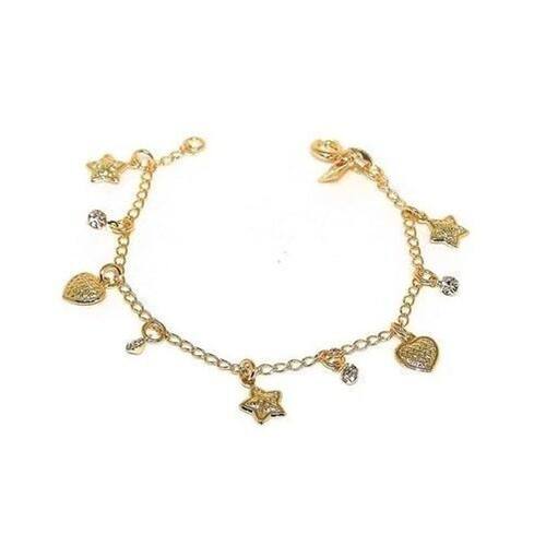 Pulseira Infantil com Pingente de Corações, Estrela e Pontinhos de Luz Banhado a Ouro. Delicada é sucesso com as criança sua pequena vai Arrasar