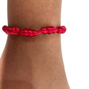 Pulseira Kabbalah 7 Nós Cetim Vermelha Com Três Pimentas