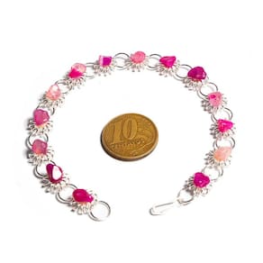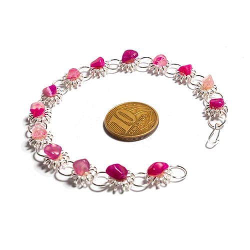 Design Sofisticado: A pulseira tem um design clássico em formato de margarida, ideal para complementar qualquer look. Propriedades da Ágata Rosa: Conhecida por sua capacidade de promover equilíbrio e serenidade, a Ágata Rosa é um símbolo de proteção e harmonia. Acessório Brilhante e Elegante: A pedra de Ágata Rosa possui um brilho radiante, tornando esta peça única e atraente. Produto de Alta Qualidade: Com pedras genuínas e lapidação rolada, a pulseira oferece durabilidade e resistência.