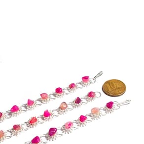Observação sobre a Pedra:Como a Ágata Rosa é uma pedra natural, ela pode apresentar variações em tonalidades e grafismos. Pequenas inclusões e fissuras podem ocorrer, o que é normal em minerais autênticos de garimpo. Aconselha-se hidratar a pedra com óleo mineral para manter sua beleza. Compre agora e adicione um toque de elegância ao seu estilo com a Pulseira Margarida com Ágata Rosa! Marca: CristaisdeCurvelo