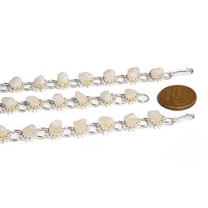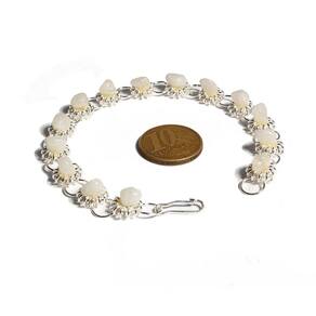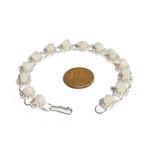 Pulseira Margarida com Quartzo Leitoso Natural Rolado | Brilho Elegante e Design Sofisticado - Bijuteria Prateada Descrição do Produto: Adicione um toque de delicadeza e serenidade ao seu visual com a Pulseira Margarida com Quartzo Leitoso Natural Rolado. Esta peça exclusiva é perfeita para quem busca elegância e sofisticação em acessórios simples, mas cheios de estilo. Com design inspirado na flor margarida, a pulseira possui pedras genuínas e autênticas de quartzo leitoso com alto brilho, criando um efeito radiante e encantador em qualquer ocasião. Características do Produto: