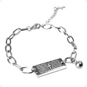 Pulseira masculina aço inoxidável prata + pingente pai nosso oração religião casual social presente pulseira Unissex em Aço Inoxidável Prata com Pingente Retangular Gravado a Laser com a Oração do Pai Nosso Completa 25 cm com Extensão