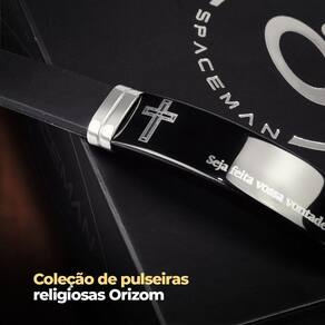 Pulseira Masculina Ajustável Aço Inox Pai Nosso - Qualidade Premium - Orizom Pulseira Masculina Pai Nosso Ajustável - 21cm de comprimento