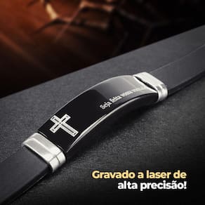 Adquira agora esta pulseira masculina, 12mm de largura, com a oração do Pai Nosso gravada discretamente. Além de ser um acessório estiloso, esta pulseira traz um significado especial para quem a usa.